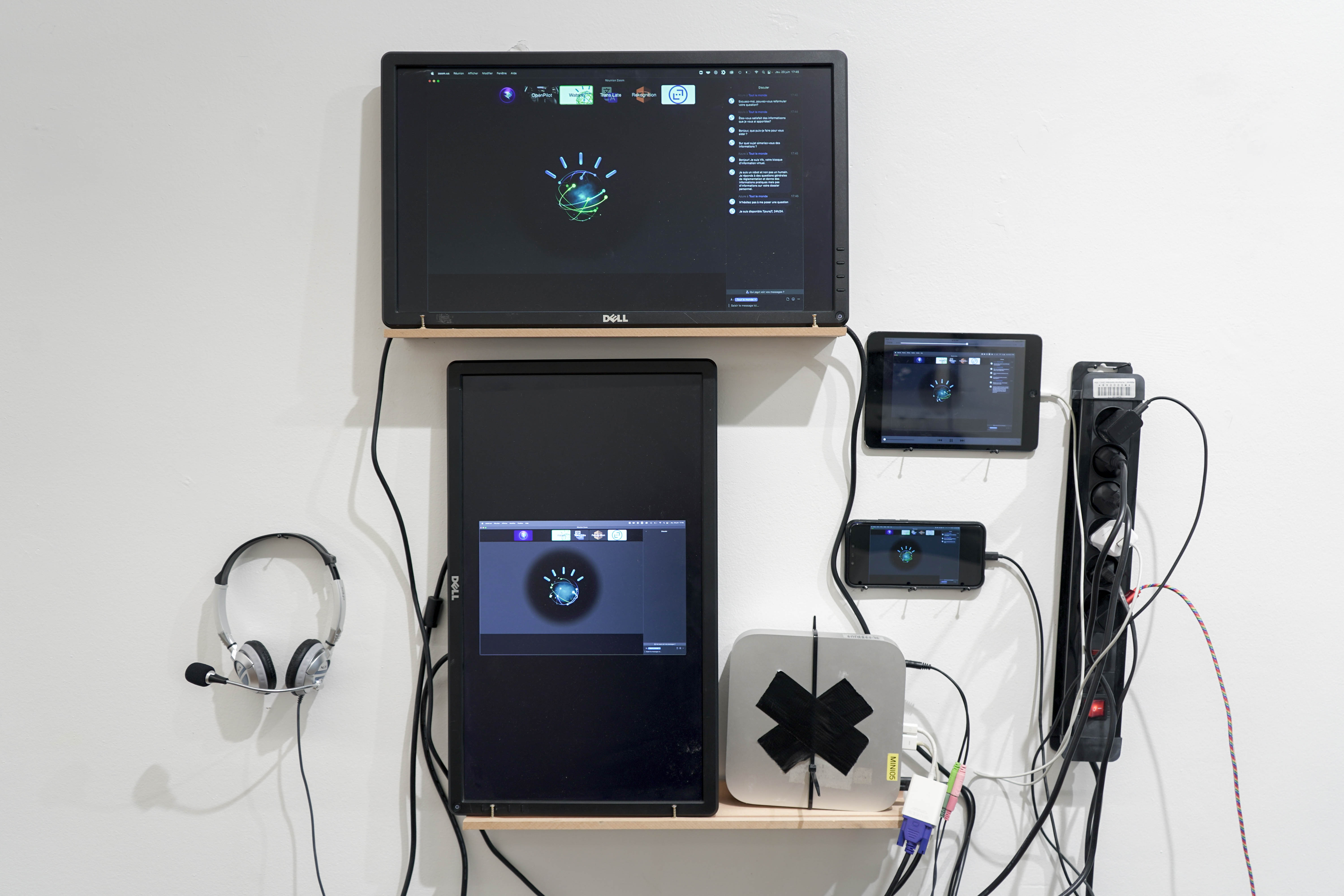 The worksessions resulted in a diverse production, based on proposals by Élie Bolard, Seda Gürses and Femke Snelting (TITiPI), Dasha Ilina, and Marloes de Valk: a series of cards with executable words helping to reflect on more sustainable and supportive artistic practices using technology; technological fables highlighting the implications of the cloud right into our intimacy; parodic videos questioning our paradoxical relationship to platforms mixing individualism and isolation but also desire for spirituality and communion; or electronic server installations whose execution requires zany or provocative actions, possibly foreshadowing a not so distant future…